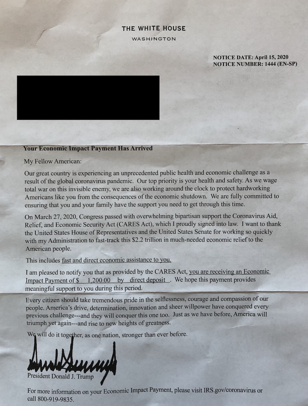 I recently came across a copy of the COVID-19 economic relief explanation letter being sent out by the White House here in the United States:
