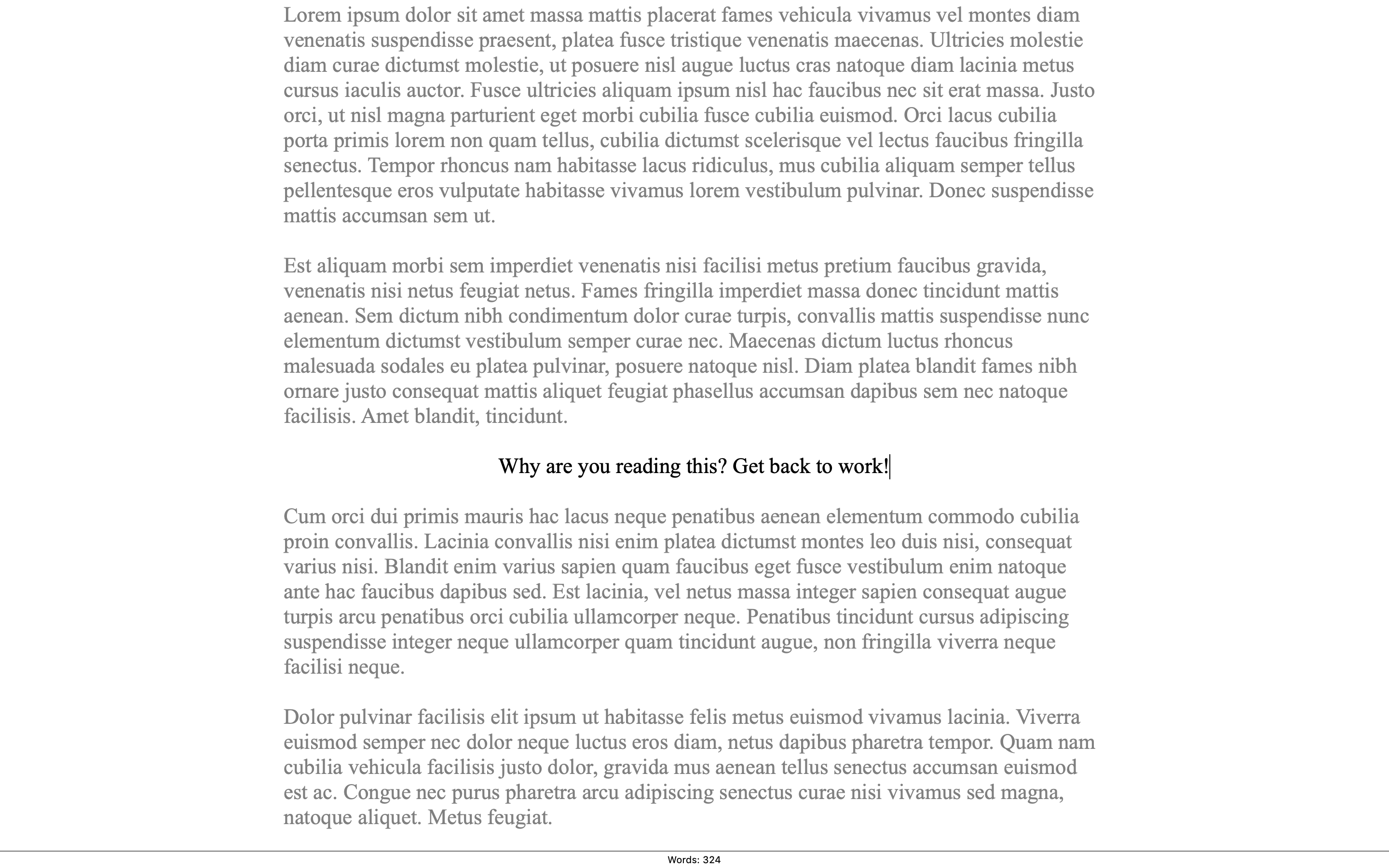 One of the little joys in my life is using Full Screen Minimal view in Nisus Writer (Express and Pro). I don't want to see menus, palettes, or even the clock. I just want to see text and nothing else.