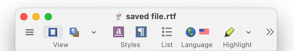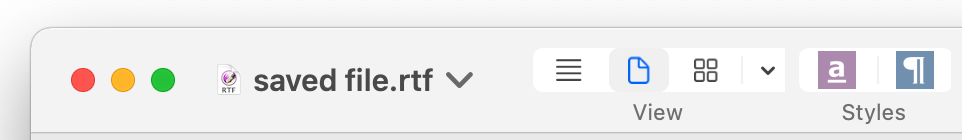 The look of standard macOS document windows changed when Big Sur was released. The new window frame subsumed the document titlebar into the toolbar, so the file properties were placed alongside the toolbar.