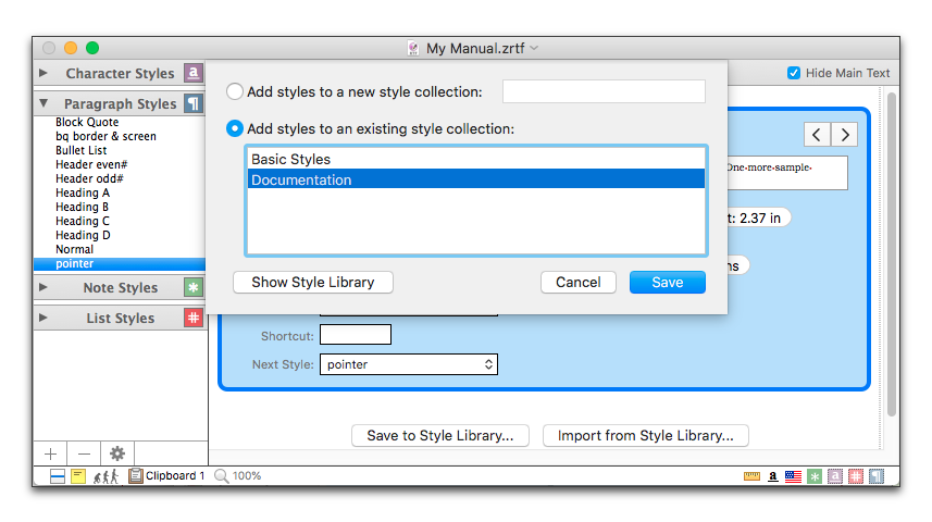 Once you have created a Style Collection in your Style Library, you can add styles to it.