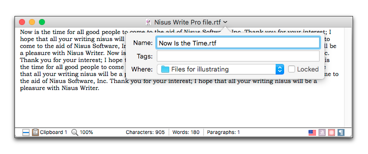 Renaming a Nisus Writer document from the title bar