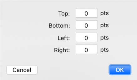 3. Enter the desired padding amounts, specified in points, and click OK to confirm.