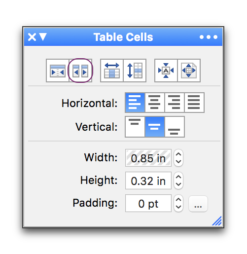 Table Palette Buttons |