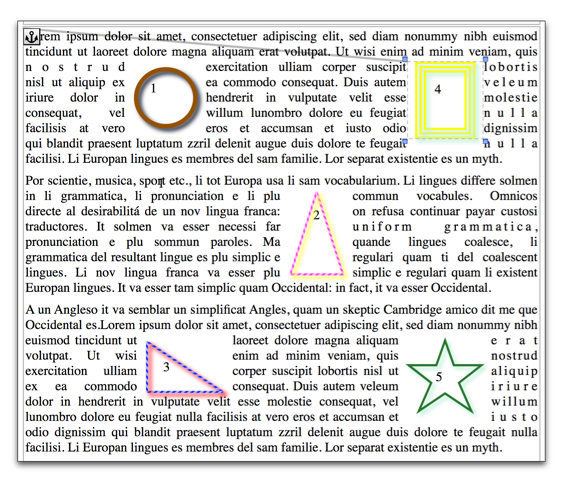 Nisus Writer Pro also lets you insert a “Canvas”, which enables you to work on a number of shapes together, unencumbered by your text.